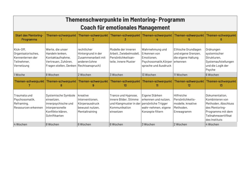 Wie ist das Mentoring „Coach für emotionales Management“ aufgebaut?